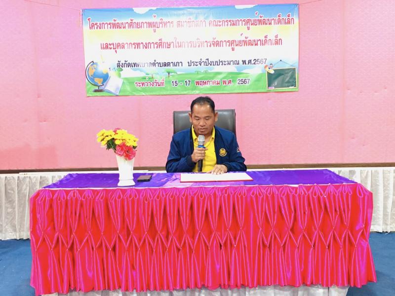 description วันที่ 15 พ.ค 2567 โครงการพัฒนาศักยภาพ ผู้บริหาร สมาชิกสภา คณะกรรมการศูนย์พัฒนาเด็กเล็ก และบุคลากรทางการศึกษาในการบริหารจัดการศูนย์พัฒนาเด็กเล็ก สังกัดเทศบาลตำบลตาเกา ประจำปีงบประมาณ พ.ศ.2567 ระหว่างวันที่ 15 -17 พฤษภาคม 2567 เวลา ณ ห้องประชุมสำนักงานเทศบาลตำบลตาเกา person admin