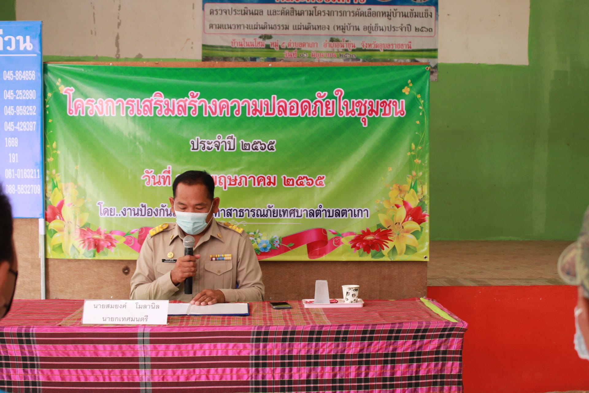 วันที่ 23 พฤษภาคม 2565 นายสมยงค์ โมลานิล นายกเทศมนตรีตำบลตาเกา เป็นประธานในพิธีเปิดโครงการ เสริมสร้างความปลอดภัยในชุมชน ประจำปี 2565 ณ ศาลาประชาคมบ้านโนนโฮม ตำบลตาเกา อำเภอน้ำขุ่น จังหวัดอุบลราชธานี กำหนดการ -08.00 น. ลงทะเบียนอบรม -08.30 น. พิธีเปิดโครงการเสริมสร้างความปลอดภัยในชุมชนประจำปี 2565 -09.00 น. บรรยายเรื่อง "เสริมสร้างความปลอดภัย นายกเทศมนตรีตำบลตาเกามอบถังดับเพลิงให้กับชุมชน -11.00 น.บรรยายเรื่อง "เสริมสร้างความปลอดภัยจากยาเสพติด -12.00 น. รับประทานอาหารเที่ยง -13.00 น. บรรยายเรื่อง เสริมสร้างความปลอดภัยจากอัคคีภัยและฝึกปฏิบัติการใช้ถังดับเพลิงเบื้องต้น 15.00 น. พิธีปิด