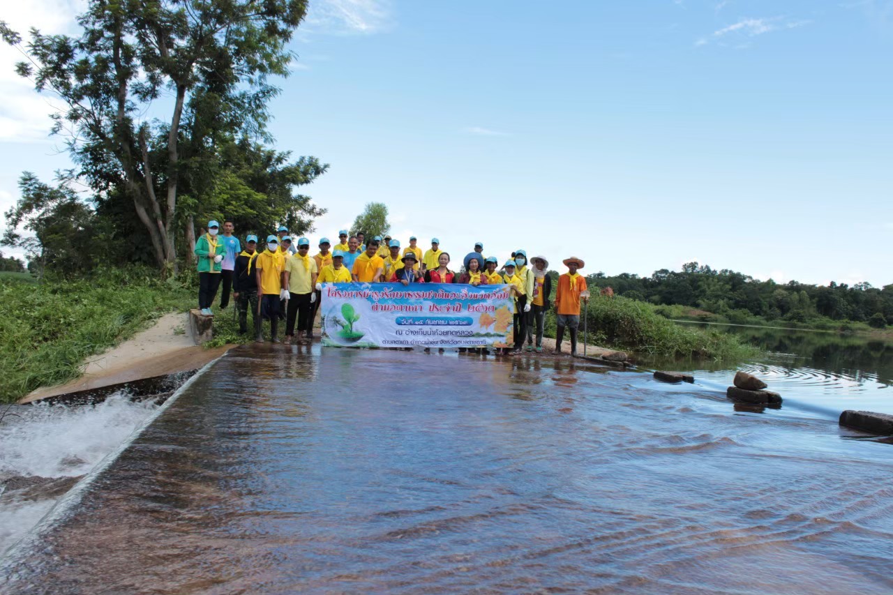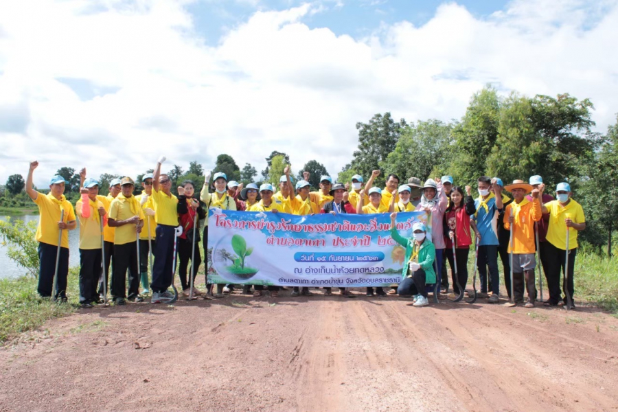 เทศบาลตำบลตาเกา จัดกิจกรรมบำรุงรักษาทรัพยากรธรรมชาติและสิ่งแวดล้อม ตามโครงการบำรุงรักษาทรัพยากรธรรมชาติและสิ่งแวดล้อมตำบลตาเกา ปี 2563 ร่วมกับ ส่วนราชการ ภาครัฐ ภาคเอกชน ภาคประชาชนในพื้นที่ร่วมกันทำความสะอาด ปรับภูมิทัศน์ บริเวณอ่างเก็บน้ำห้วยทดหลวง หมู่ที่ 3 ตำบลตาเกา อำเภอน้ำขุ่น จังหวัดอุบลราชธานี